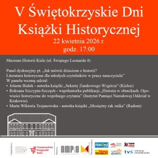 Podczas wędrówki odwiedzimy przestrzenie, w których przyszły pisarz mieszkał, uczył się i spędzał czas młodości. Spacer będzie okazją do pogłębienia wiedzy o jego związkach z Kielcami oraz refleksji nad wpływem miasta na jego...Czytaj więcej