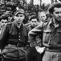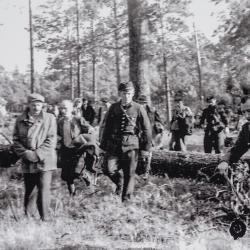 4. Odwrót partyzantów po akcji rozbicia więzienia kieleckiego przy ul. Zamkowej. Pierwszy z prawej kpt. Antoni Heda „Szary”, 5 sierpnia 1945 r.