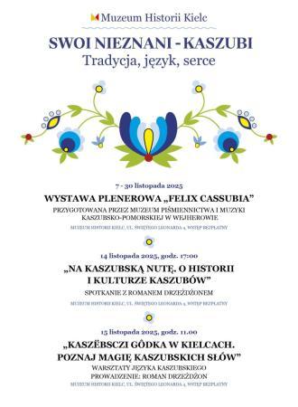 W ramach cyklu muzealnego "Swoi nieznani", tym razem poświęconego historii i kulturze kaszubskiej od 7 listopada na dziedzińcu Muzeum Historii Kielc można oglądać wystawę plenerową „Felix Cassubia” przygotowaną przez Muzeum Piśmiennictwa i Muzyki Kaszubsko-Pomorskiej w Wejherowie. Ekspozycja prezentuje bogactwo tradycji, języka i kultury Kaszub – jednej z najciekawszych regionalnych wspólnot Polski. Wystawa czynna będzie do końca listopada.